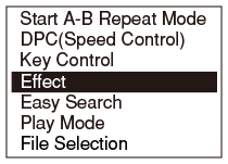 - En arrêt mode d’arrêt ou de lecture d’un fichier musical, appuyez sur la touche OPTION Pour afficher le menu OPTION, sélectionnez « Effect », puis appuyez sur la touche