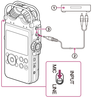- Procédez à l’enregistrement de la même manière que lorsque vous utilisez les microphones intégrés pour régler l’enregistreur PCM linéaire en mode veille.