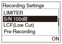 - Lors de l’enregistrement d’un fichier DSD, le réglage S/N 100dB est désactivé.