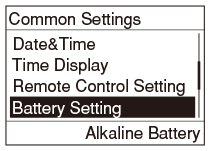 Settings » - « Common Settings » - « Battery Setting », puis appuyez sur la touche