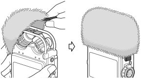 È possibile ridurre il rumore causato dal vento o dal respiro che colpisce direttamente i microfoni inserendo la protezione antivento in dotazione sui microfoni incorporati.