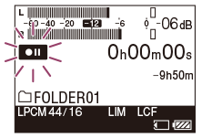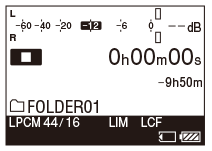 Il registratore PCM lineare si dispone in modalità di attesa della registrazione, l’indicatore luminoso