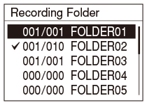 - È anche possibile visualizzare il menu “Recording Folder” premendo un tasto funzione, se è stata configurata la funzione “Function Key Setting”.