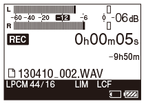 - Qualora il file registrato superi la dimensione massima consentita per i file (2 GB per un file LPCM/DSD o 1 GB per un file MP3) durante la registrazione, il file viene diviso.