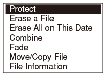 - In modalità di arresto della riproduzione, premere il pulsante OPTION per visualizzare il menu OPTION, selezionare “Protect”, quindi premere il pulsante