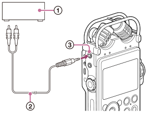 Quando si intende collegare il registratore PCM lineare alla presa jack di ingresso audio analogico di un apparecchio esterno, utilizzare un cavo audio (non in dotazione).