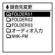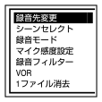 オプション/録音済ファイル(長押し)ボタンを押すと、ポータブルラジオレコーダーの各機能に応じたオプションメニューが表示され、設定の変更などができます。