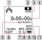 ポータブルラジオレコーダーの動作状態に応じて下記のように表示されます。