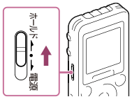 - 電源が入っているときにボタン操作をできなくするには、ホールド・電源スイッチを「ホールド」の方向にスライドする。