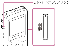 付属のステレオヘッドホンを(ヘッドホン)ジャックにつなぐと、録音中の音をモニターすることができます。