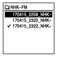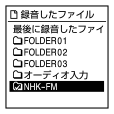 ラジオ放送を録音すると、フォルダ名に放送局名または周波数の名前の付いたフォルダが自動的に作成され、録音したラジオ放送はファイルとしてその中に保存されています。そのファイルを選ぶことで、録音したラジオ放送を再生します。