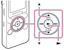 ボタンで再生したいファイルの入った放送局名または周波数のフォルダを選び、