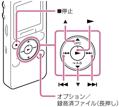 を押したままにして早戻し/早送りし、聞きたいところを探すことができます。