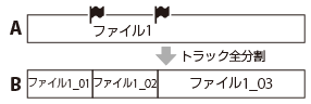 はトラックマーク位置B. 分割後:トラックマーク位置でファイルが分割され、分割したファイル名の末尾に連番(「_01」、「_02」、「_03」)が付く