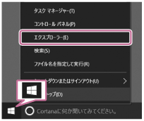 デスクトップ画面の左下隅を右クリックして、表示されたメニューの[エクスプローラー]をクリックしてください。