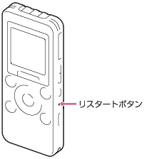「よくある質問」内のトピックをチェックしてみても解決しない場合、リスタートすると、問題が解決することがあります。ピンなど先の細い棒で、リスタートボタンを押してください。動作中にリスタートボタンを押すと、ポータブルラジオレコーダーに保存しているデータや設定が消去される場合がありますので、画面右下にある録/再ランプが消えていることを確認してから操作してください。