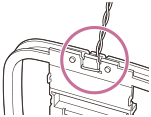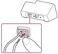 スピーカークレードルのAM外部アンテナ接続端子のレバーを押しながらアンテナコードの先端を差し込む。