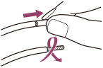 レバーを押して、金属導線部(アンテナコードがむき出しになっている部分)を、左右2か所の端子に確実にはさんでください。