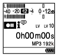 REC/PAUSE.يتوقف مسجل IC مؤقتا عن التسجيل. وعندما تلتقط الميكروفونات الداخلية أصواتا، يتغير طول شريط مقياس مستوى الذروة ليبين مستويات صوت التسجيل.