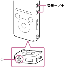 (ヘッドホン)ジャックにつなぐと、録音中の音をモニターすることができます。