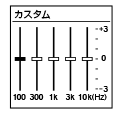 ボタンを押す。カスタム設定画面が表示されます。 - 100Hz、300Hz、1kHz、3kHzまたは10kHzの周波数帯のレベルを調節する場合は、
