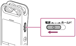 」の方向へ8秒間スライドさせたままの状態にすると、ICレコーダーがリスタートします。動作中にリスタート