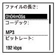 ICレコーダーで録音したファイルまたは音楽ファイルの再生停止中に、オプションメニューから「ファイル情報」を選ぶと、現在選択されているファイルの情報を表示します。
