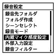 各種設定」 - 「録音設定」 - 「内蔵マイク感度設定」を選び、