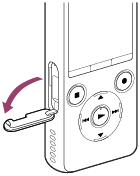 - IC 레코더의 작동 표시등이 점등하지 않은 것을 확인한 후, microSD 카드 슬롯의 커버를 열어 주십시오.