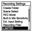 - A função LIMITER funciona quando “Manual” está selecionado para “Built-in Mic Sensitivity” ou os tipos de entrada de áudio em “Ext. Input Setting” no menu OPTION.