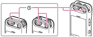 - Ligue o gravador de IC para que os microfones incorporados apontem na direção da fonte de som de destino.