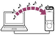 Du kan kopiera musikfiler och ljudfiler (FLAC(.flac) / (LPCM(.wav) / MP3(.mp3) / WMA(.wma) / AAC-LC(.m4a)) från en dator till din IC-inspelare genom att dra och släppa.