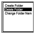 för att välja önskad mapp. - Välj ”Delete Folder” på OPTION-menyn, och tryck sedan på