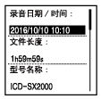 - 录音日期/时间: 文件的录制日期和时间(年/月/日/时间)。