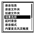 - 在录音待机状态下,从OPTION菜单中选择“场景选择”,然后按