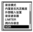 - 在录音待机或暂停状态下,从OPTION菜单中选择“VOR”,然后按