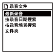 录音文件:“最新录音”、“按录音日期搜索”、“按录音场景搜索”及“文件夹”。