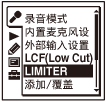 当输入声音太响时,LIMITER功能可自动调整输入电平以避免手动录音时声音失真。