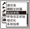 如果IC录音机开启并闲置所设定的一段时间,IC录音机将自动关机。