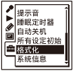 可以格式化当前所选的存储介质(内置内存或存储卡),删除存储介质上的所有数据并将文件夹结构重置为默认状态。