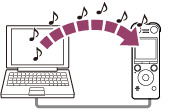 可以采用拖放的方式,将音乐文件或其他音频文件(LPCM(.wav)/ MP3(.mp3)/ WMA(.wma)/ AAC-LC(.m4a)(*))从电脑复制到IC录音机,然后使用IC录音机进行播放。