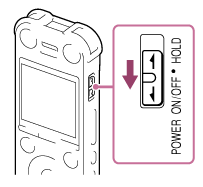 - 朝“POWER ON/OFF”方向滑动并按住POWER ON/OFF•HOLD开关,直到出现窗口显示为止。
