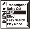 当您设置“V-UP”为“Maximum”或“Medium”时,将放大录制文件的低层部分,让您更加容易听到细微的语音。