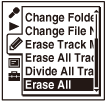 The “Erasing...” animation appears in the display window and all files in the selected folder will be erased. - Press
