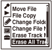 The “Erasing...” animation appears in the display window and all the track marks will be erased at one time. - Press