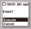 “Erase?” appears and the specified file is played back for confirmation.