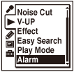 You can sound an alarm and start playback of a selected file at a desired time. You can have a file played back on a specified date, once every week, or at the same time every day. You can set an alarm for a file.