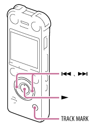 - During recording, playing back, or recording pausing, press TRACK MARK at the position you want to add a track mark.