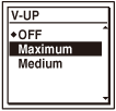 - To cancel the digital voice up function, set “V-UP” to “OFF” in step 2.