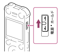 ICレコーダーを持ち運ぶ際など、誤ってボタンが押されて動作するのを防ぐために、すべてのボタン操作を無効にすることができます(ホールド)。